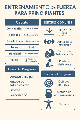 Para quienes se inician en el entrenamiento de fuerza, el entrenamiento en circuito es una de las herramientas más eficaces, seguras y motivadoras. Su estructura permite trabajar todo el cuerpo en una sola sesión, con cargas moderadas, descansos breves y una alta participación muscular general, ideal para ganar familiaridad con los ejercicios, mejorar la resistencia muscular y generar adherencia al entrenamiento.